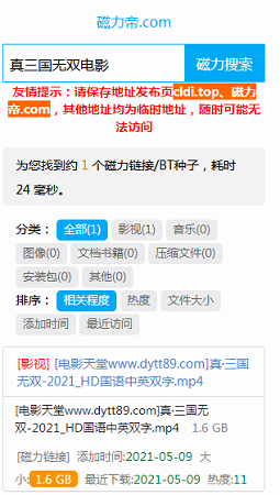 这个磁力帝搜索引擎非常好用,基本上什么资源都有。特别是电影资源非常丰富,基本和院线同步,虽然画质不是很清晰,但是基本可以看。还有动漫和小说资源非常全,轻松搜索轻松看!